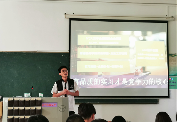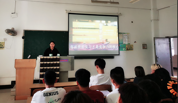 李玳君首先用游戏通关的形式和学生们互动,并为顺利通关的学生送上了精美礼品,随后向学生们介绍了学院百胜订单班的合作情况,该订单班从2018年开始运行,学院为企业输送了近百名优秀管培生,企业培养了张成航、魏书苗、董晨阳、瞿鑫海等10余名优秀店经理,通过校企深度合作,学生们在企业兼职或实习期间进行了科学的职业生涯规划,通过努力,成为职场上的常青树。市场营销专业优秀毕业生魏书苗、瞿鑫海两位店经理从个人成长经历,向学弟学妹们介绍他们从学校到职场的成长过程,勉励新同学树立远大目标,脚踏实地完成校内学习,及时补充企业知识,掌握市场资讯,争取在未来职场中笑傲江湖。
