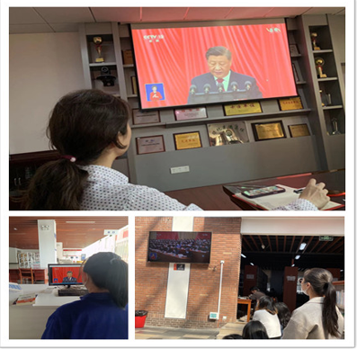 大家深受鼓舞、倍感振奋,纷纷表达了观后感。图书馆支部书记石顺利表示,“热烈庆祝中国共产党第二十次全国代表大会胜利召开!坚持中国共产党的领导,不断学习,踔厉奋发,以实际行动推进校园文化建设。”馆员们表示,“ 坚决拥护党,听党指挥,坚守平凡岗位,脚踏实地,不断学习,不辜负这个伟大时代。”学生们表示,“广大青年学子要立足学习,锐意进取,以优异的成绩庆祝党的二十大胜利召开,以卓越的表现向党致敬,为实现中华民族伟大复兴中国梦贡献青年力量。”