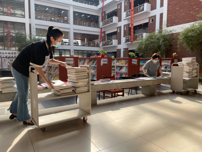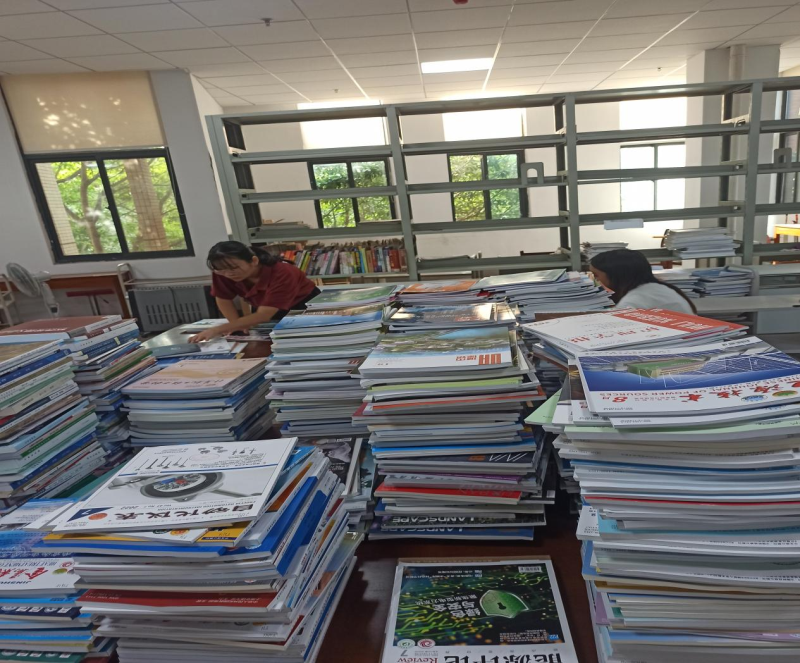 今年暑假,为保证期刊服务工作不受影响,图书馆老师带领勤工助学学生对积压的40余包累计2000多册期刊进行拆包、验收、盖章、分类,逐一进行系统记到,并将已审校过数据的期刊全部整理上架,保证期刊及时与读者见面。