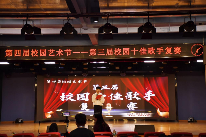 新闻网讯(通讯员张芬陈思敏 曹婉婷)11月11日晚,由学工处校团委主办、大学生艺术团承办的第四届校园艺术节——校园“十佳歌手”复赛在东湖校区大学生活动中心隆重举行。本次大赛邀请校团委办公室卢诗琪、李诗媛,旅游与管理学部刘晨担任评委老师,另外还有50名大众评委,由各学部和校级团学组织代表组成。
