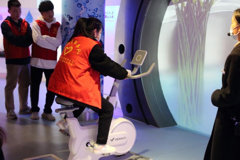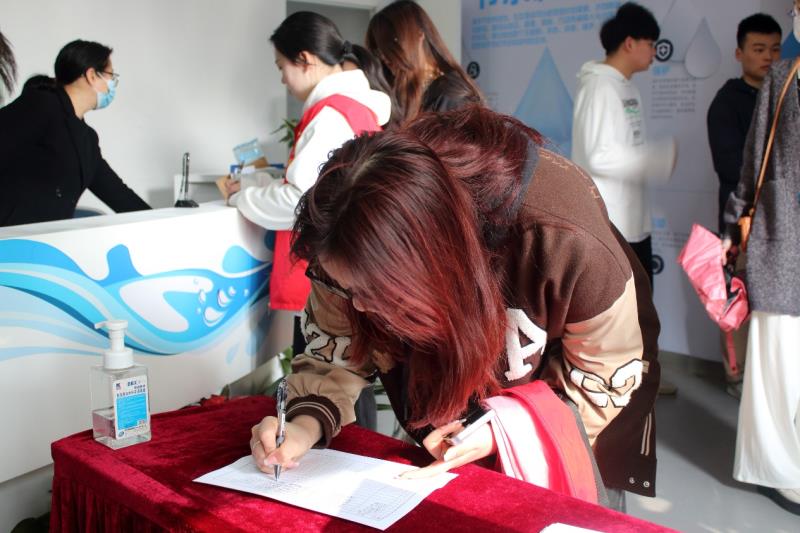 随后,志愿者们来到节水技术体验馆,讲解员向大家依次介绍中水回收、雨水利用、企业循环用水和在线监测等一系列先进节水技术。志愿者们现场体验人体水含量测试、节水灌溉和节水洗车技术。志愿者彭诗晴在现场体会回收用水技术后说道:“水科技融入到生活后为我们带来许多便利,我们应该呼吁大家把节约水、保护水的理念落实到行动中,并且传递给更多人。”