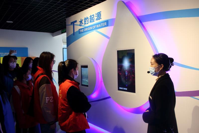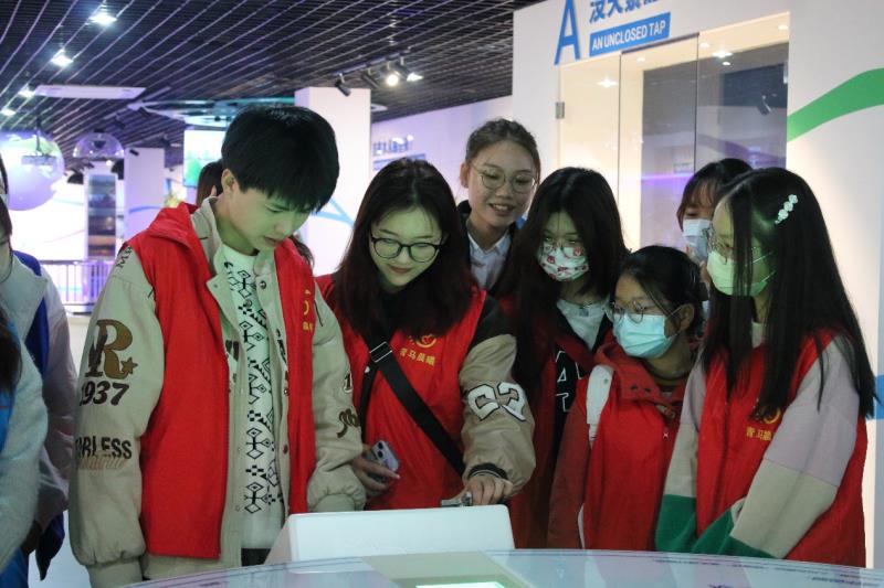 在讲解员的带领下,志愿者们参观了节水科普馆。在馆外了解到标志性建筑“无源之水”,标志象征着生命离不开水,全人类共享地球水资源。在馆内依次参观了关心、共享、保护和希望4个展区。学习到水的起源、水的三态、水孕育文明、中国水文化和世界水资源等一系列关于水的科普知识,认识到世界水资源的匮乏与分布不均,进一步了解到每一滴水都来之不易,呼吁大家不仅要关心、保护水资源,还要把这个理念和希望传递给身边更多的人,传递给子孙后代,这也是节水科技馆的宗旨所在。
