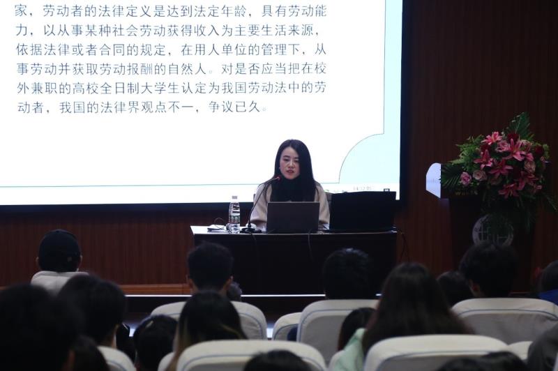 但旋讲述兼职过程中容易遇到的风险并提出规避风险的建议,并为大家科普最低时薪、工作时长等一系列法律常识。她提醒学生们兼职时要保留书面材料或者截图等证据,遇到问题及时寻找学院辅导员帮忙,合理维护自身权益。
