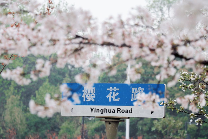 雨打樱花,花衬雨,雨中樱花尽显芳华。春分前后,阴雨连绵,淅淅沥沥的春雨打在粉嫩的花瓣上,晶莹剔透,纷纷叠叠。花瓣随微风细雨轻盈飘落,远远望去,好似给草坪、台阶、青石板路铺了一张粉嫩的“樱花地毯”,别有一番浪漫。