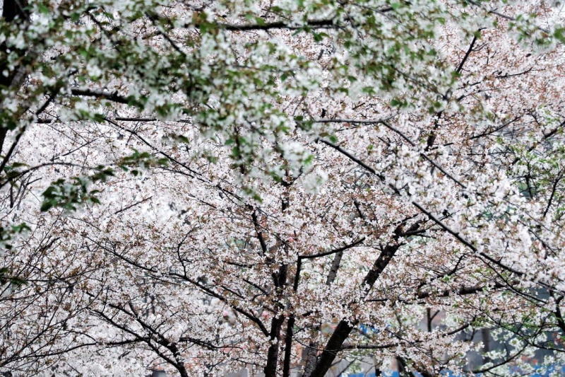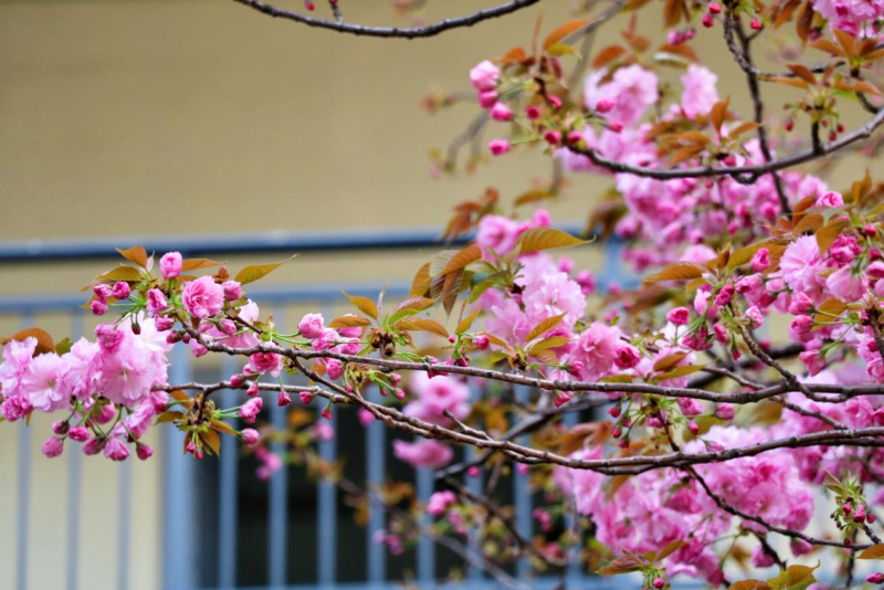 三月接近尾声,淡雅清纯的早樱已绚烂数日,开始大规模飘落,宛若飞雪,这时,藏匿在其中的晚樱悄然绽放。相比于早樱,晚樱颜色更艳丽、花型更饱满,远似绣球,近若薄绢,优雅动人。漫步其中,好似置身于粉色的童话世界之中。