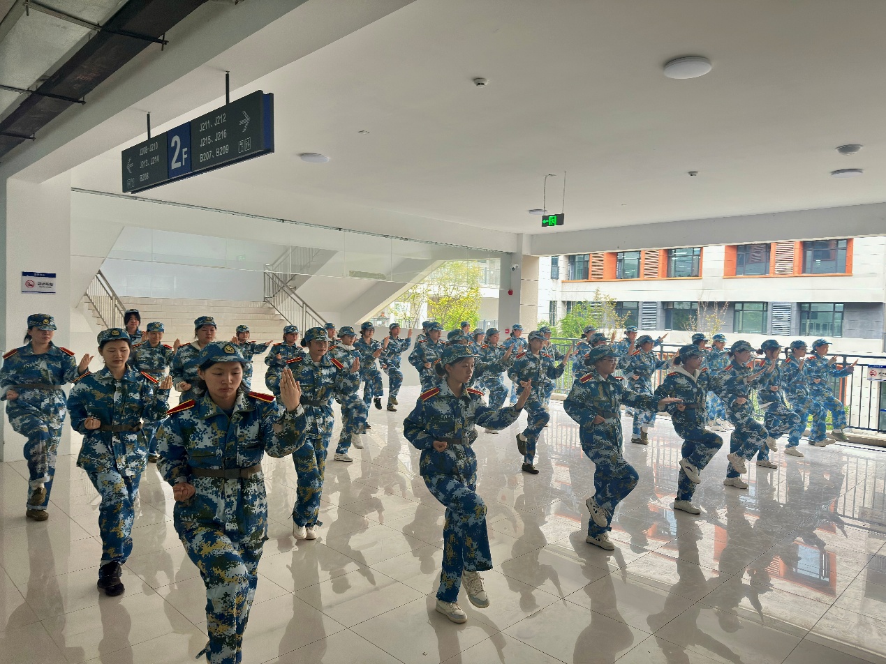 虽然窗外阴雨绵绵没有空旷的场地供我们进行身体锻炼,但是丝毫不影响大家对军训的热情与活跃。各营各连利用有限的场地,分组分批有序的进行着室内的军训任务。每位学员没有因为场地原因而懈怠和抱怨,积极配合教官的统一安排和协调。