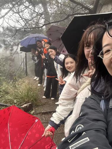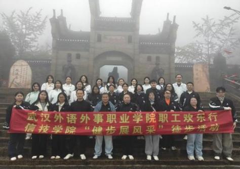 (信息技术学院 通讯员 石娟)烟雨朦胧的天台山,石阶湿滑,云雾缭绕。但这丝毫不减武汉外语外事职业学院信息技术学院全体教师的登山热情。2025年10月18日,他们以“健步展风采”为主题,开启了一场雨中徒步登山之旅,在挑战与坚持中,书写了属于团队的活力篇章。