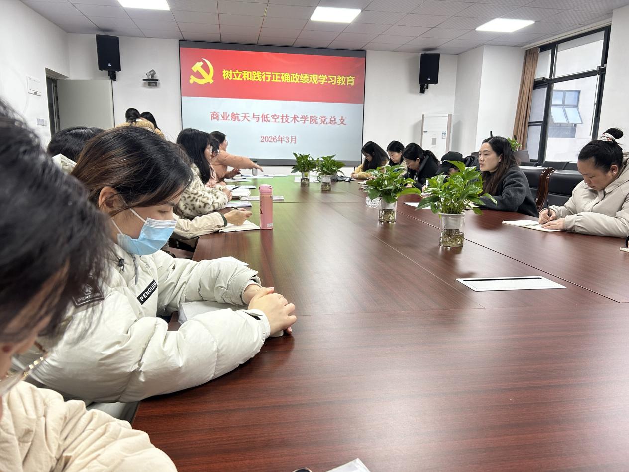 (商业航天与低空技术学院 通讯员 张莹)为深入贯彻落实党中央关于在全党开展树立和践行正确政绩观学习教育的部署要求,2026年3月17日,商业航天与低空技术学院党总支在学院办公楼606会议室召开专题学习会,组织全体党员集中学习习近平总书记关于树立和践行正确政绩观的重要论述及相关文件精神。会议由党总支副书记杨维同志主持,全体师生党员参加。