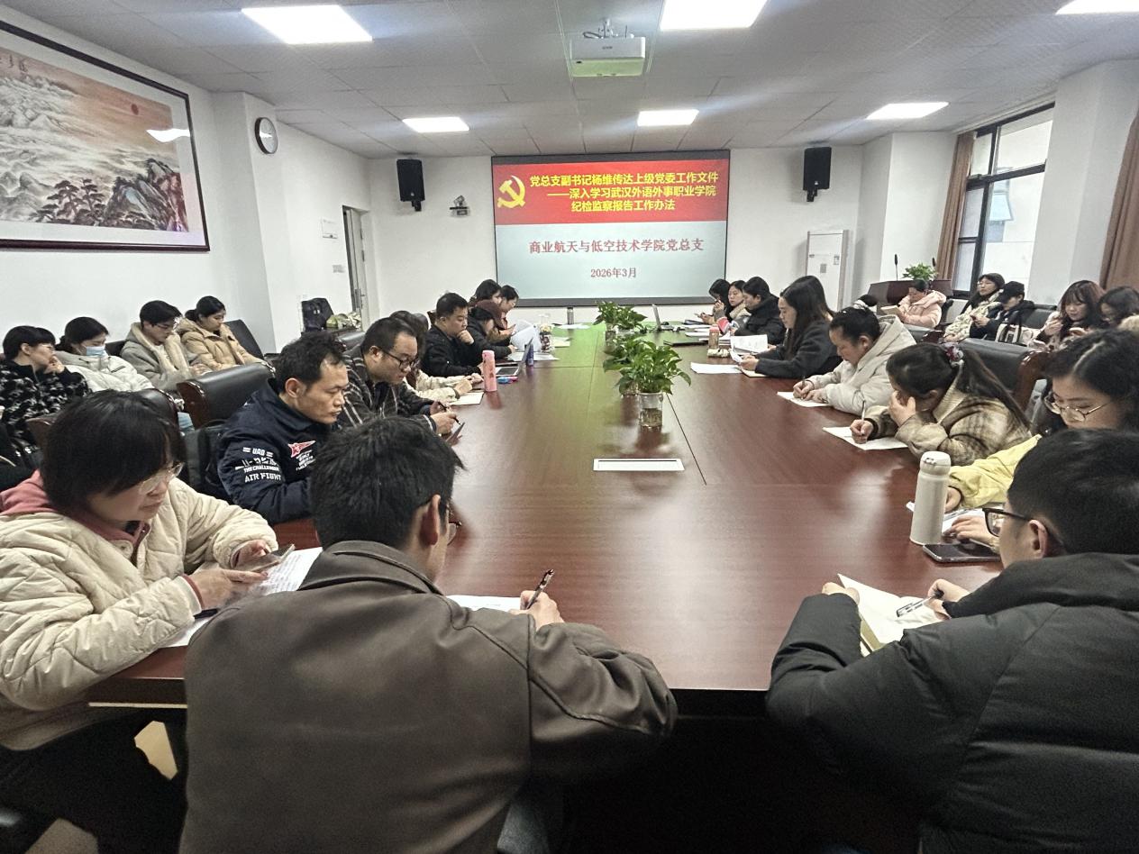(商业航天与低空技术学院 通讯员 张莹)为深入贯彻落实新时代党的建设总要求,压紧压实党支部书记抓党建工作责任,2026年3月17日,商业航天与低空技术学院党总支在学院办公楼606会议室召开2025年度党支部书记抓基层党建工作述职评议考核会。会议由党总支副书记杨维同志主持,党总支委员、全体教工党员及学生党员代表参加。
