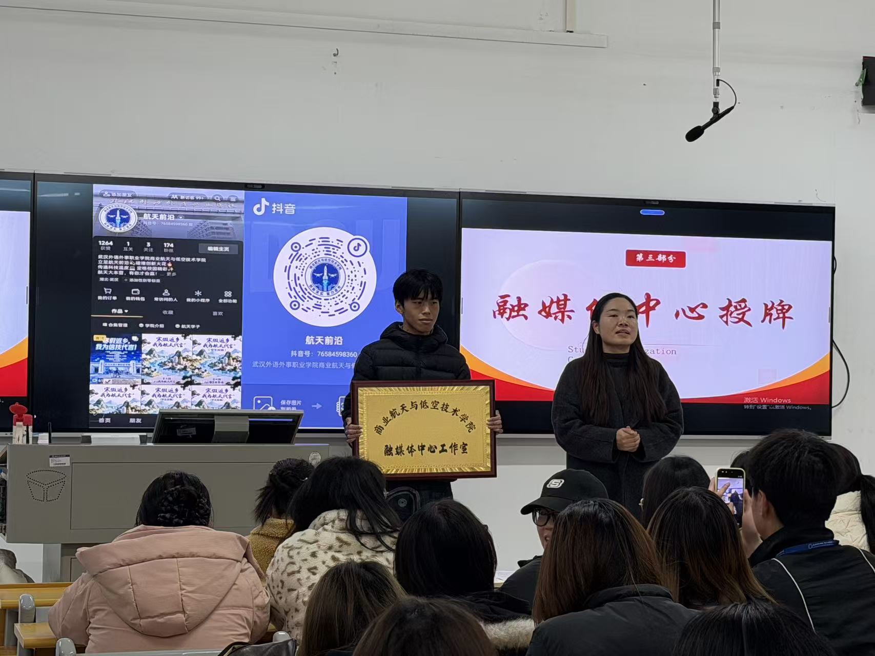(商业航天与低空技术学院 通讯员 程思颖)为进一步整合学院宣传资源,创新宣传方式方法,切实提升校园文化的传播力、影响力和引导力,筑牢学院宣传思想文化阵地,3月20日上午,航天学院融媒体中心挂牌仪式在综合楼B118顺利举行。学院党总支副书记杨维出席仪式并为融媒体中心授牌,学院分团委书记程思颖到场见证挂牌全过程。