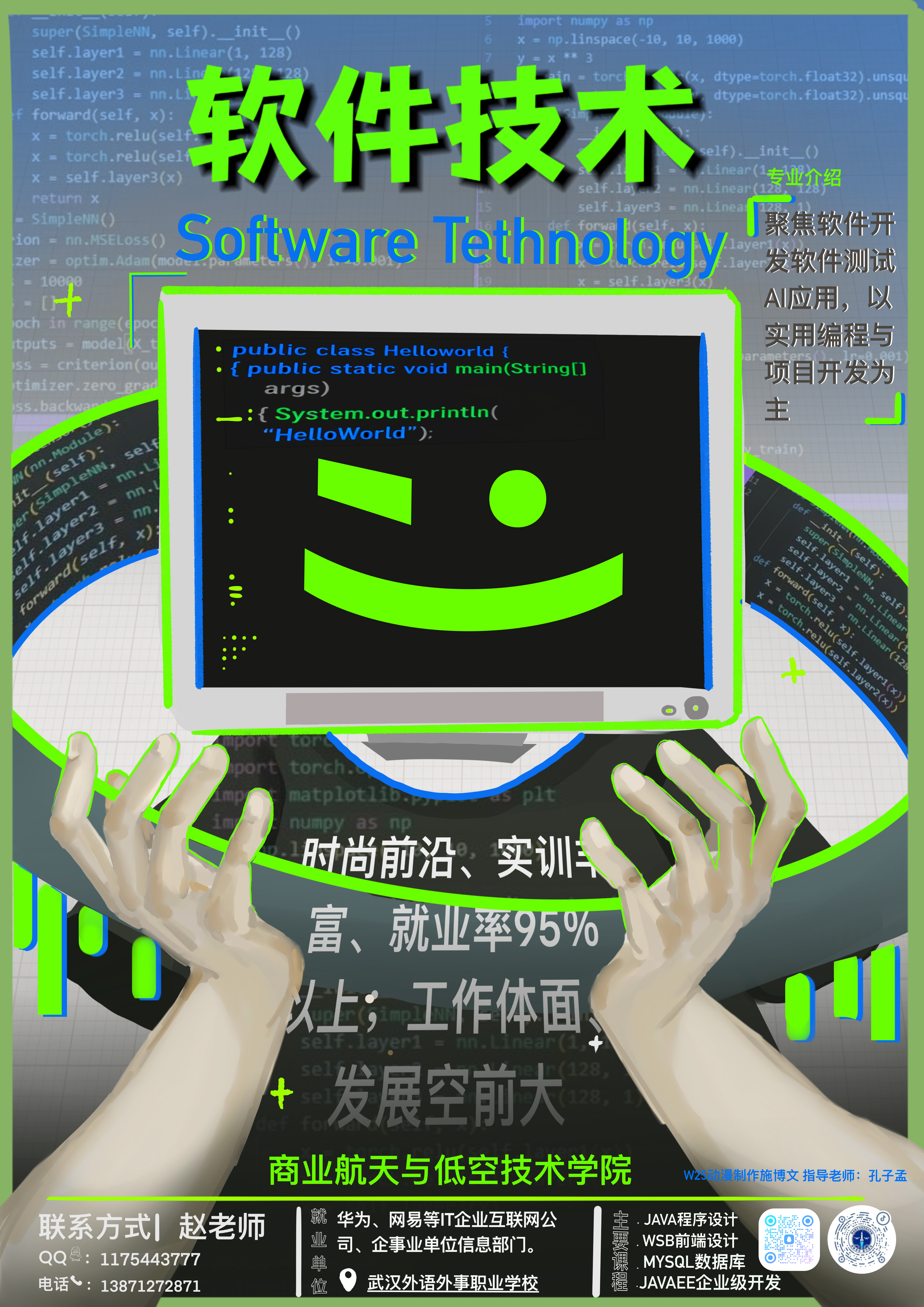 本专业面向软件开发与AI应用领域,培养会编程、能开发、懂测试的实用型技术人才。不搞复杂理论,重点强化动手能力和岗位实操,让学生学得会、用得上、能上岗。