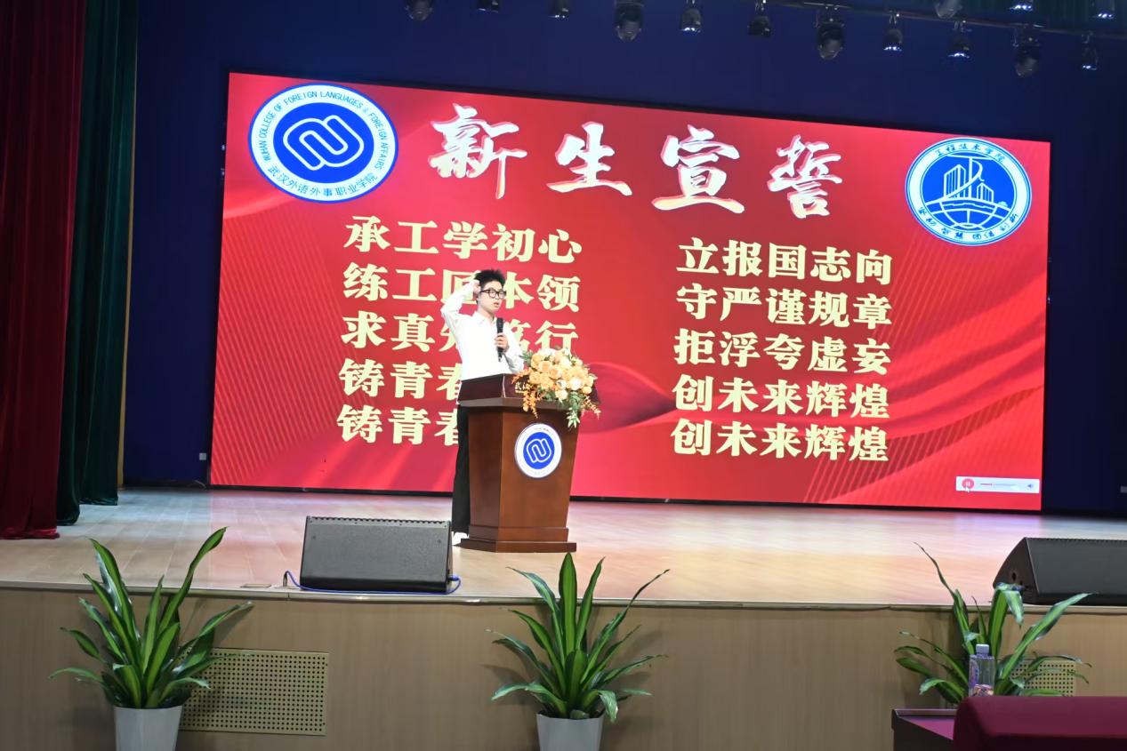 在新生代表的带领下,全体新生进行了庄严的宣誓,表达了努力学习、不负青春的决心。