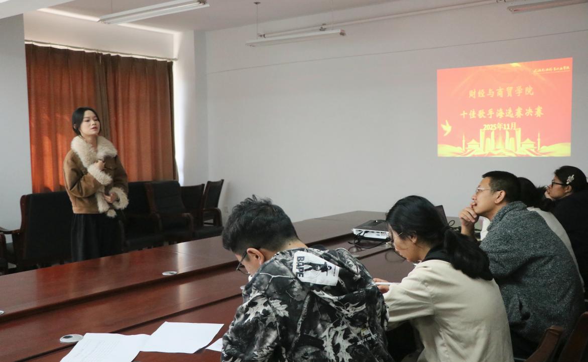 2025年11月16日,武汉外语外事职业学院财经与商贸学院第三届校园十佳歌手大赛海选赛决赛顺利举办,学院为热爱歌唱的学子搭建了展现青春风采的舞台,丰富了校园文化生活和营造了积极向上的艺术氛围,同时也为校赛选拔了优秀歌唱选手,助力校园文艺活动的高质量开展。