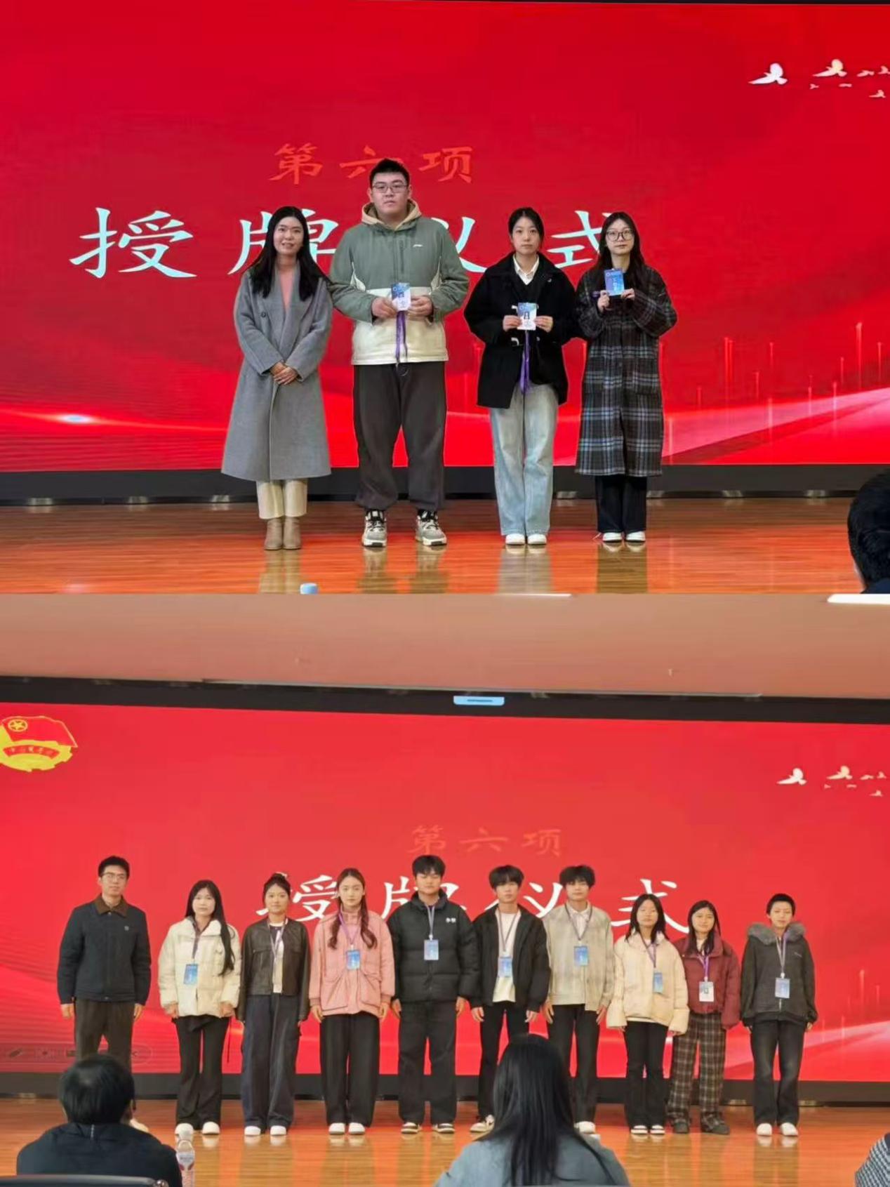 授牌环节简洁而庄重。丁慧琳老师为学生会主席团成员授牌,汪彪老师为各部门部长授牌。牌匾象征着责任与使命,标志着新一届学生组织骨干正式接过工作重任,将以饱满热情投入学生工作。接过工作牌的那一刻,每位学生干部的脸上都洋溢着坚定的神情,更坚定了为同学服务、为学院争光的信念。