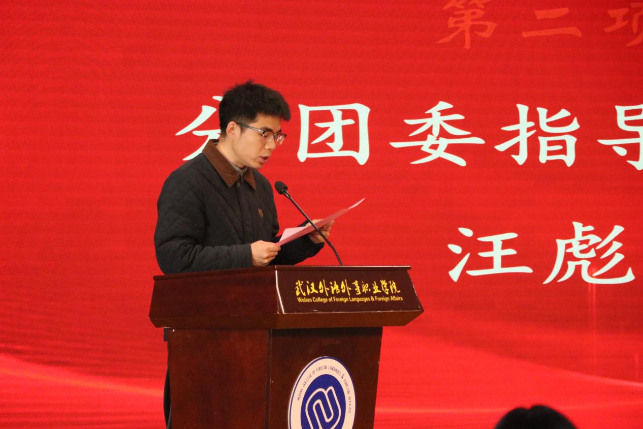 汪彪老师为大会致辞,对23届分团委学生组织、学生会的成立表示祝贺,回顾了往届学生组织在学风建设、校园活动开展、学生服务保障等方面的成效,并对新一届学生骨干提出要求:要秉持责任意识,锤炼务实作风,以服务同学为核心,以创新思路推进工作,在实践中提升能力,为学院发展注入青春动能。