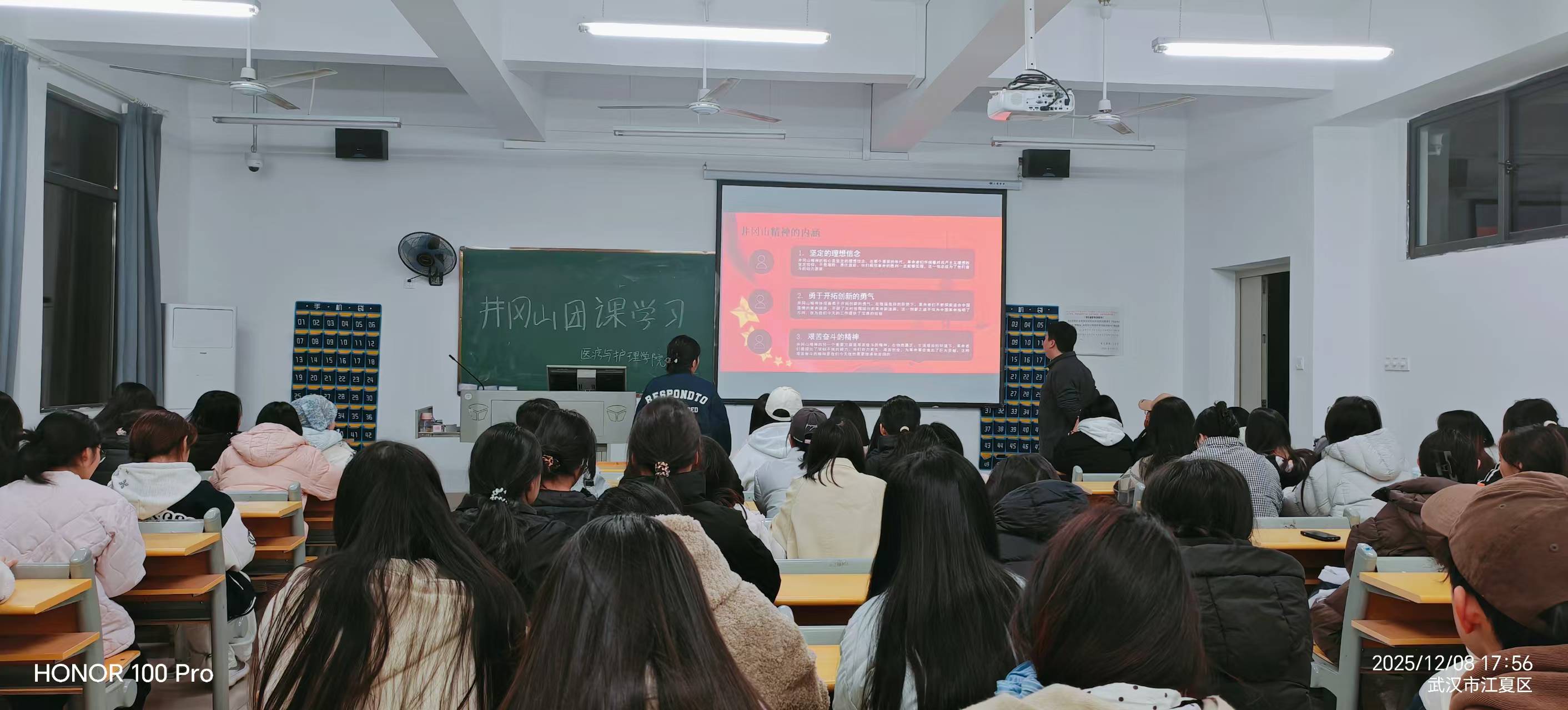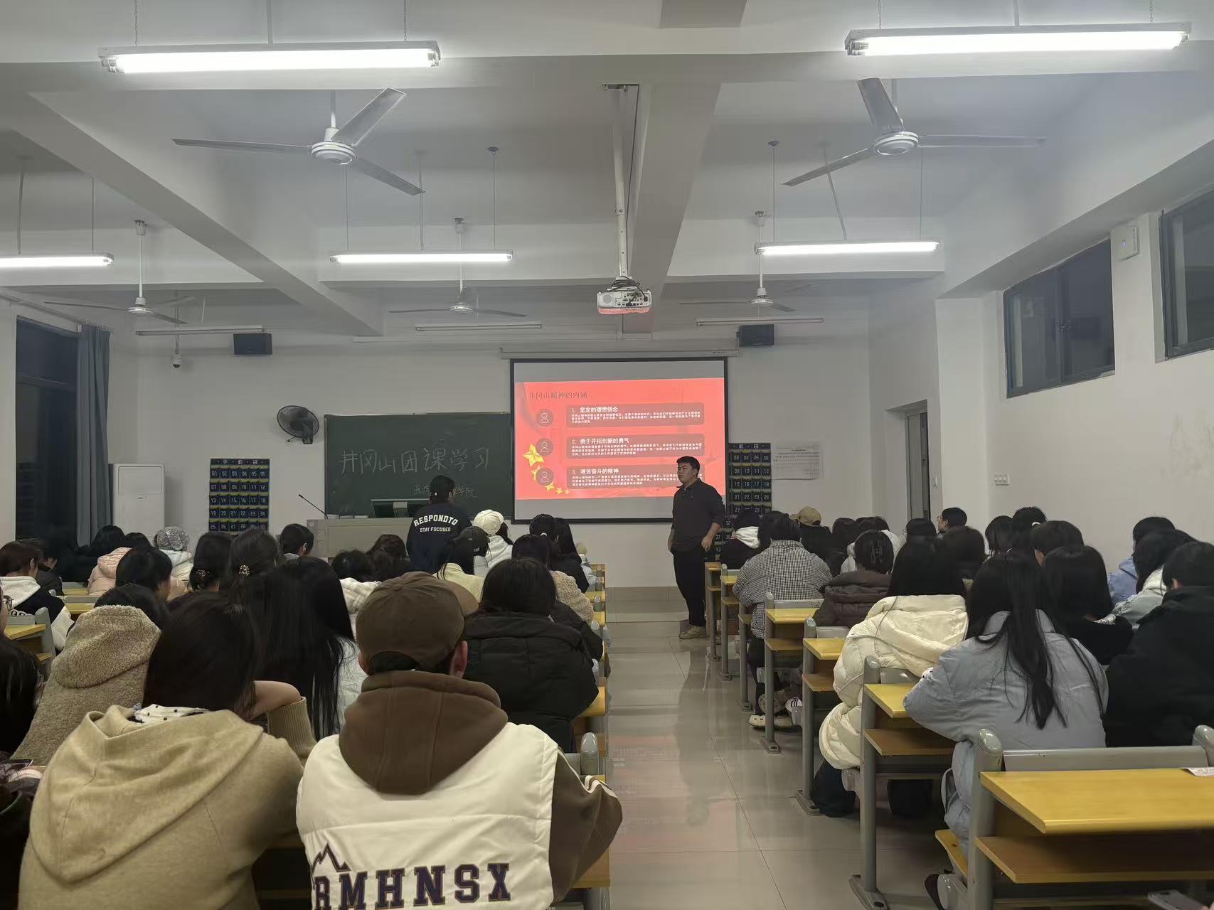 随后,冯老师围绕如何让井冈山精神与“三会两制一课”同频共振展开深入探讨,并提出了具体实践路径:以“三会”为核心筑牢精神根基。在团支部委员会上谋划团日活动主题,在团支部大会上专题学习井冈山历史与精神内涵并分享学习心得,在团小组会上总结经验,让每一次组织生活都成为精神洗礼。以“两制”为抓手检验践行成效。在团员教育评议中,将“是否传承井冈山精神”作为重要标准,检视自身在理想信念、艰苦奋斗等方面的不足,以年度团籍注册强化责任担当。以“一课”为载体创新传承形式,让井冈山精神的学习传播更具吸引力与实效性。