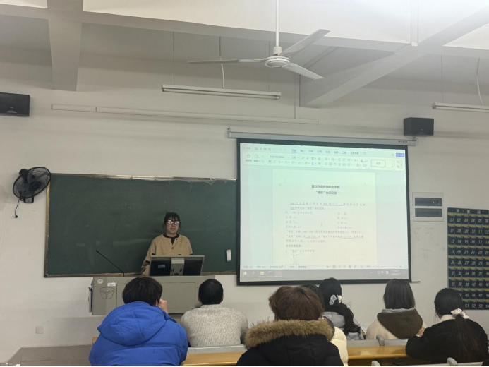 随后,分团委副书记严陈茜子同学开展入党申请书专题指导。她结合自身入党经历和组织要求,从入党动机、思想认识、结构框架、内容要点、语言规范五个方面,系统讲解了入党申请书的撰写方法。她强调,入党申请书是表达对党的信仰与追求的重要载体,必须做到态度真诚、内容真实、情感真挚,杜绝抄袭、套作,引导同学们结合自身学习、工作和思想实际,真实表达加入中国共产党的迫切愿望和坚定决心。指导过程中,严陈茜子同学还现场解答了同学们提出的撰写疑问,针对性地给出修改建议,帮助大家理清写作思路、把握核心要求。