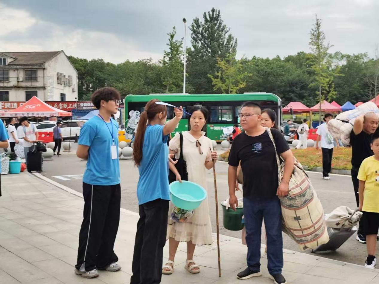 “同学,行李重不重?我来帮你扛!”“往这边走,宿舍楼离这里大概5分钟路程,楼下有学长学姐帮你找宿舍。”在校园门口和学院迎新点之间,由学院学生会、青年志愿者协会组成的迎新团队开启了“搬运行李+引路导航”双服务模式。他们穿着统一的红色志愿马甲,顶着初秋的烈日,穿梭在校园的各个角落:看到拎着大行李箱的新生,立刻上前搭把手;遇到分不清方向的同学,主动接过行李,一边带路一边介绍校园布局——从食堂的位置、超市的营业时间,到实训楼的分布,用生动的讲解帮新生快速熟悉校园环境。