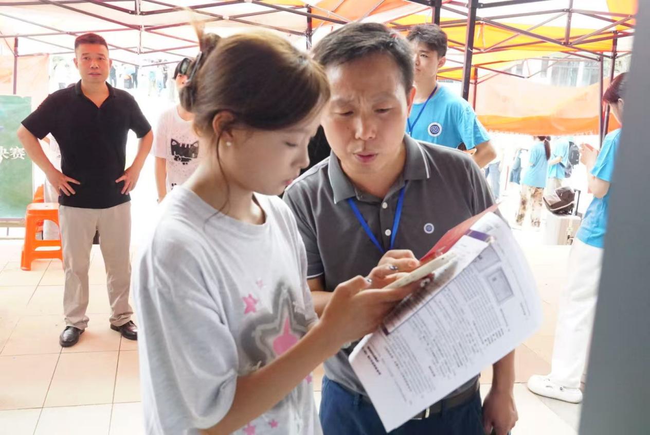 除了班助与志愿者在迎新现场提供的一线服务之外,学院的领导和辅导员们也全程坚守在迎新现场,深入到各个报到点和宿舍区,与新生及其家长进行亲切的交流。他们询问了新生的报到情况,并针对新生和家长关心的问题,如专业学习、就业前景等,给予了详细的解答。