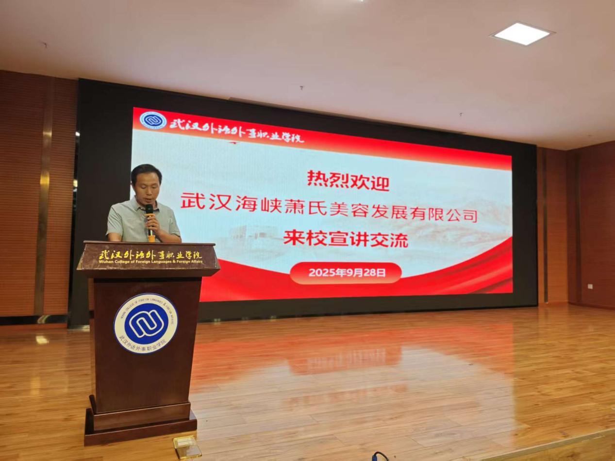 9月28日,武汉外语外事职业学院医疗与护理学院在一食堂三楼学生活动中心成功举办了以“美容点亮人生,技能照亮前程”为主题的特别活动。本次活动特别邀请了武汉海峡萧氏美容发展有限公司团队的李校长一行,以及中华人民共和国第三届全国职业技能大赛美容项目银牌得主刘洪莹莅临指导。活动的主要目标是为学院24级护理(医疗美容)方向班及25级医学美容技术专业的学生进行技能竞赛的宣讲,并选拔优秀学生组建备赛队伍,为未来参加各级技能赛事储备人才。医疗与护理学院副书记李勇主持了本次活动,院长熊蕊等学院领导及师生代表共同出席了此次活动。