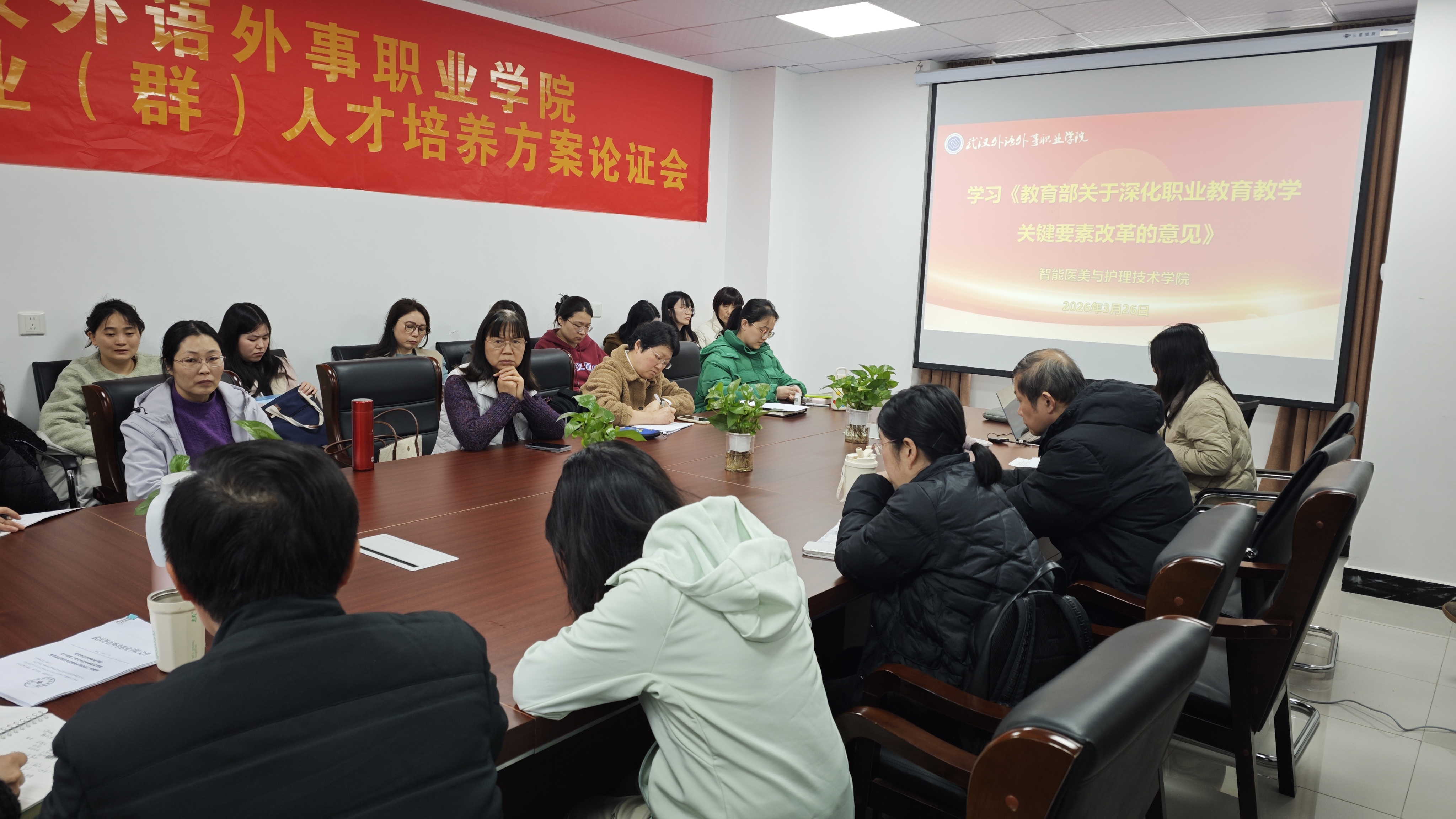 会上,熊蕊院长结合学院医美技术、护理两大核心专业特色,对《意见》的核心要义、重点任务进行了细致深入的解读,重点围绕职业教育“五金”建设、产教深度融合、校企协同育人、技能型人才培养等核心要求,结合当前职业教育发展新形势、行业发展新趋势,明确了学院未来改革发展的方向和路径。她强调,学院将以专业群建设为重要抓手,聚焦医美、护理领域技能型人才培养痛点难点,稳步推进各项改革任务落地见效,不断优化人才培养方案,强化实践教学环节,提升人才培养的针对性和实效性,切实培养出适应行业发展、满足岗位需求的高素质技能型人才。