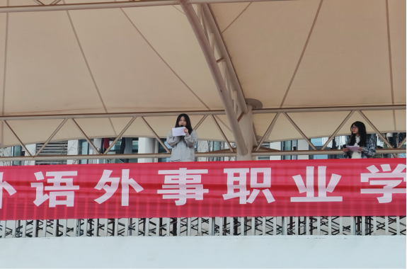 在升旗仪式上,来自应用23级商务英语一班的包美月,作为优秀学生代表发言,讲诉她对大学的认识。