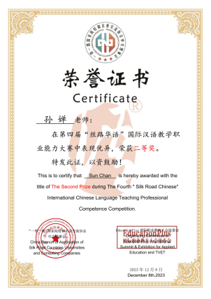 订单班的成功离不开一支高素质、专业化的师资队伍。学校精心打造了一支国际中文教学团队,其中28名教师已顺利通过中国高等教育培训中心的严格考核,荣获对外汉语教师能力证书。此外,更有1名教师脱颖而出,完成了由“一带一路”国家院校和企业交流协会中方理事会组织的“国际汉语教师培训课程”,不仅获得了国际汉语教师证书,还在第四届“丝路华语”国际汉语教学职业能力大赛中荣获二等奖及最佳人气奖。