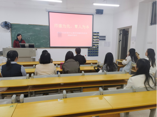 2024 年 10 月 31日,应用外国语学部职教中心的老师们举行了一场以“师德为先,育人为本”为主题的教研活动,所有教师积极参与,共同探讨教育的本质与使命。