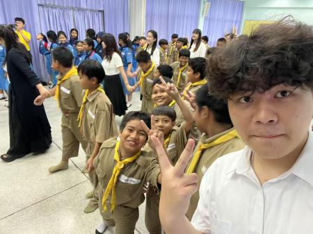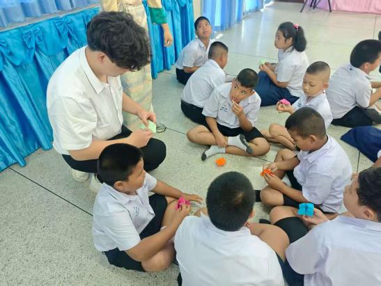 在曼谷的夜市烟火里,叶子祥与青海某大学的志愿者队友们结下深厚情谊。他们用混合青海方言与泰语的“青普话”点烤鱿鱼,更将高原文化带进课堂——当青海队友用“牦牛”举例时,泰国孩子天真发问:“牦牛爱喝冬阴功汤吗?”笑声中,文化差异化作理解的温度。