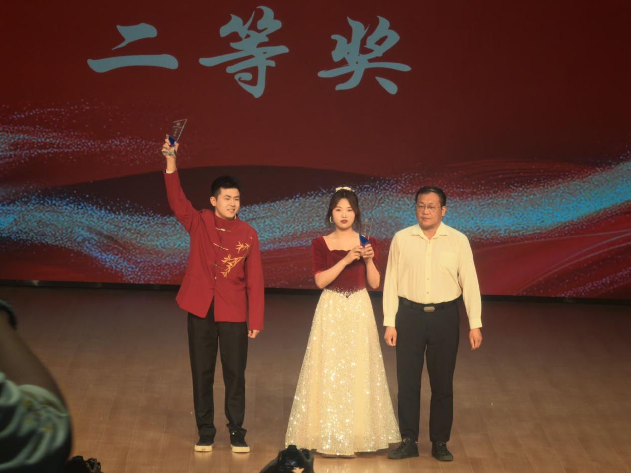 比赛开始,参赛队伍身着整齐服饰,精神饱满地登台,以嘹亮歌声诠释对祖国的热爱、对青春的礼赞。队员们配合默契,指挥手势灵动,红色旋律在现场回荡;台下观众跟着节奏挥舞,一首首充满正能量的歌曲,将比赛气氛推向一个又一个高潮。经过专业评委打分,最终外语与艺术学院荣获二等奖,参加比赛的同学们也表示此次比赛不仅提高了团队协作能力,也更加坚定了为国家和民族事业不懈奋斗的信念。
