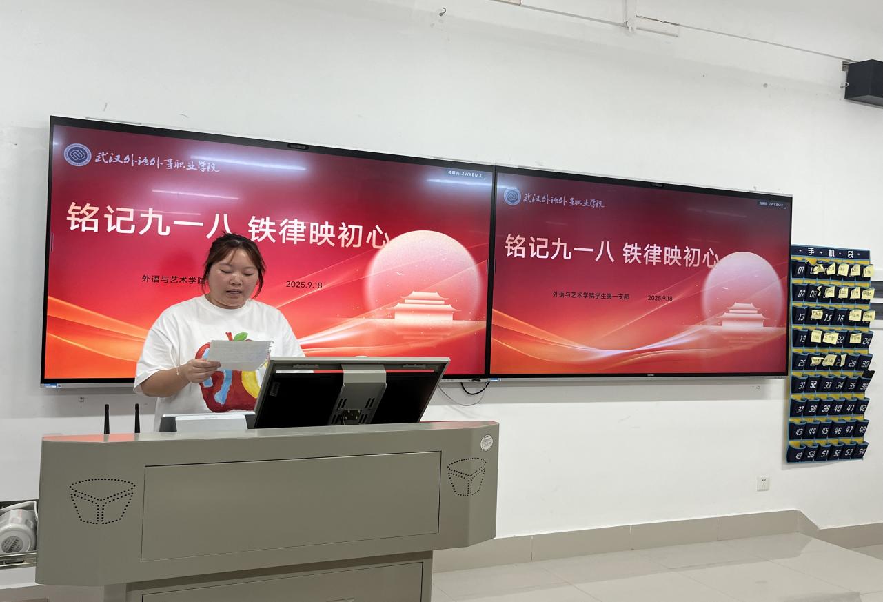 (通讯员:张憬扬)2025年9月18日中午12:00,外语与艺术学院学生第一党支部在三教J322教室举行“铭记九一八 铁律映初心”主题党日活动,支部全体党员、入党积极分子及发展对象参加。