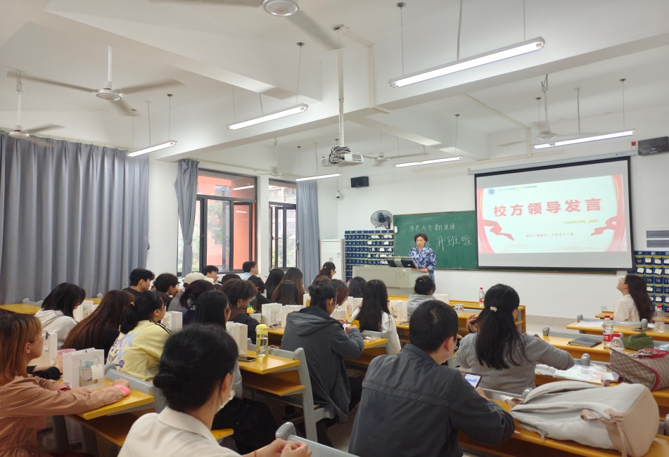外语与艺术学院院长夏丽君在致辞中,对订单班的未来寄予厚望。飞翱集团Adidas项目武汉区负责人刘经理随后发表致辞,表达了企业对深度参与人才培养的重视与承诺。紧接着,集团人力资源部陈经理详细解读了为订单班量身定制的“成长蓝图”培养体系,其“让努力被看见,让付出有回报”的核心理念,赢得了现场师生的高度认同。