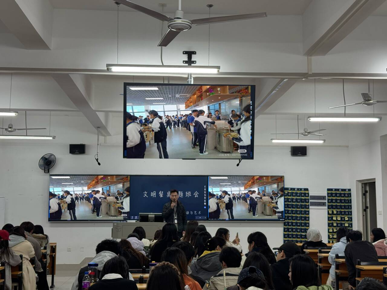 为进一步深化理解,班会设置了互动讨论环节。同学们围绕“如何在实际就餐中践行文明”“如何影响和带动身边同学共同参与”等话题踊跃发言,分享各自的观点与建议。张憬扬老师认真听取了同学们的发言,并进行了总结与引导,他强调,文明素养的提升重在实践、贵在坚持,需要从自身做起、从细节入手,将文明就餐内化为一种习惯,外化为一种自觉行动。
