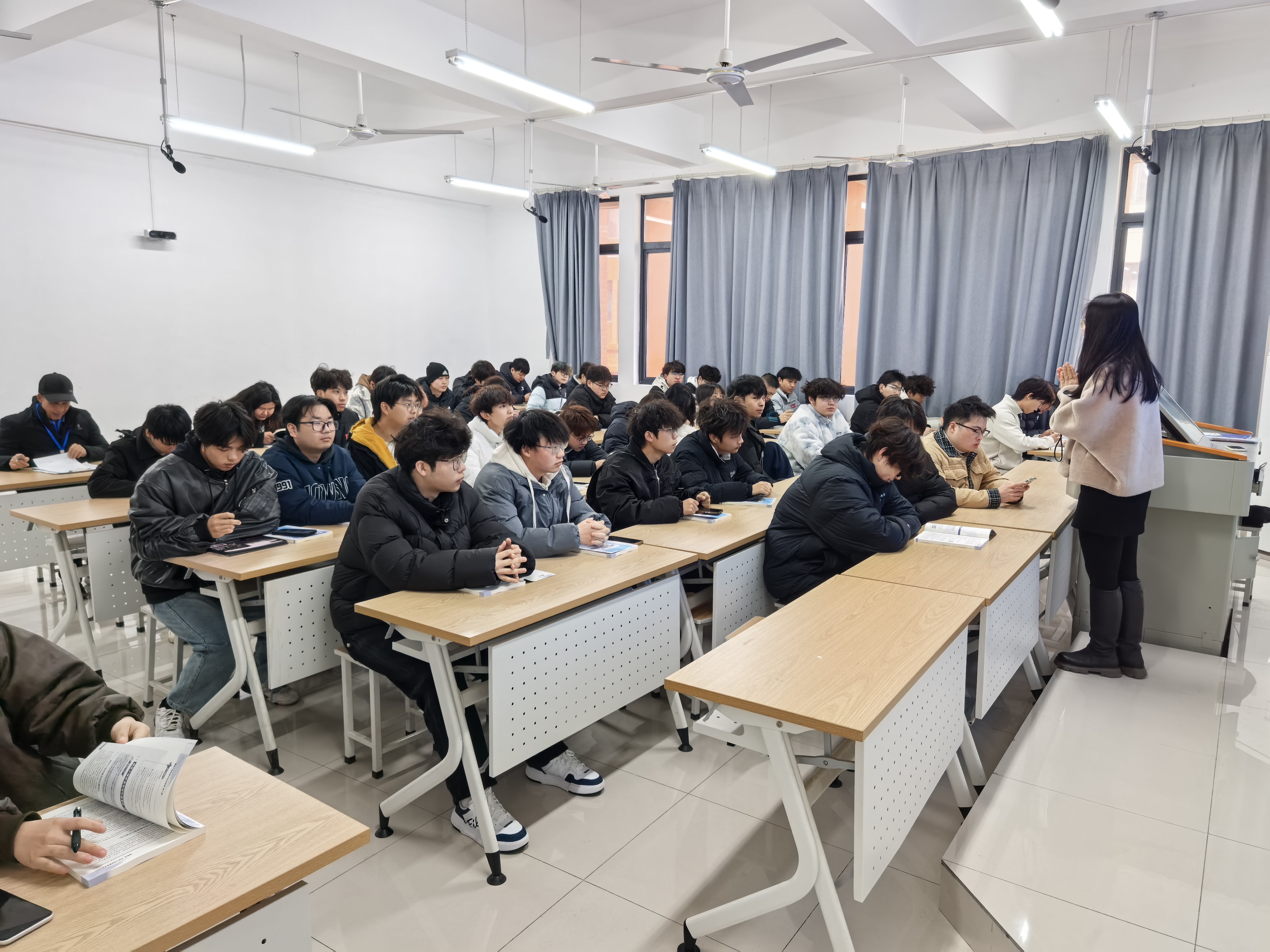 第一周的教学工作中,院领导班子一行先后走访了教学楼、实训中心等多个教学场所,重点查看了专业核心课程的开展情况。走进每一间教室,夏院长、吴院长和胡书记都细致观察教师的授课状态与学生的听讲精神。从两周以来的巡查情况看,新学期开局工作准备充分,教学运行平稳有序。教师们提前到岗、备课充分、精神饱满;学生们也迅速从假期模式切换至学习状态,课堂纪律良好,互动积极,全神贯注地聆听新学期课程,展现出新学院学子应有的求知热情和良好风貌。