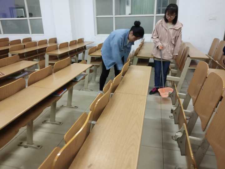 本次打扫的地点主要是各班的自习教室。在整个打扫过程中,同学们秉持着勤劳至上的理念展现出应外学部学生阳光向上,精神饱满的良好状态。本次活动人员分配采取男女分工合作的方式,女生主要负责扫地、抹桌子,男生集中火力拖地、清扫卫生死角,分工协作、井然有序、高效又快速的完成本次打扫。也许是夜幕悄悄降临的原因,九个教室参加打扫卫生的每一个同学肃静又一丝不苟的穿梭在教室,干净光洁的走廊映着外面的点点星光显得格外悠长、空旷。最后参加本次打扫卫生活动的同学都纷纷表示劳动不易,并且一致赞同此类活动的推广,利于当代大学生形成一个卫生的生活理念,强生健体的同时又能促进师生、同学之前融恰和睦的关系。干净整洁的教室和同学们高兴的脸庞夹着外面淡淡的花香,此次打扫卫生活动就此拉下帷幕。