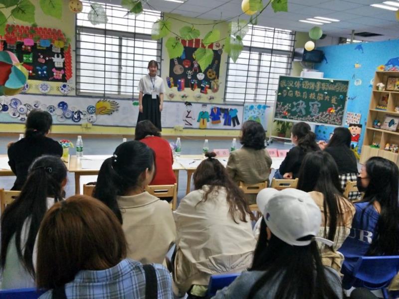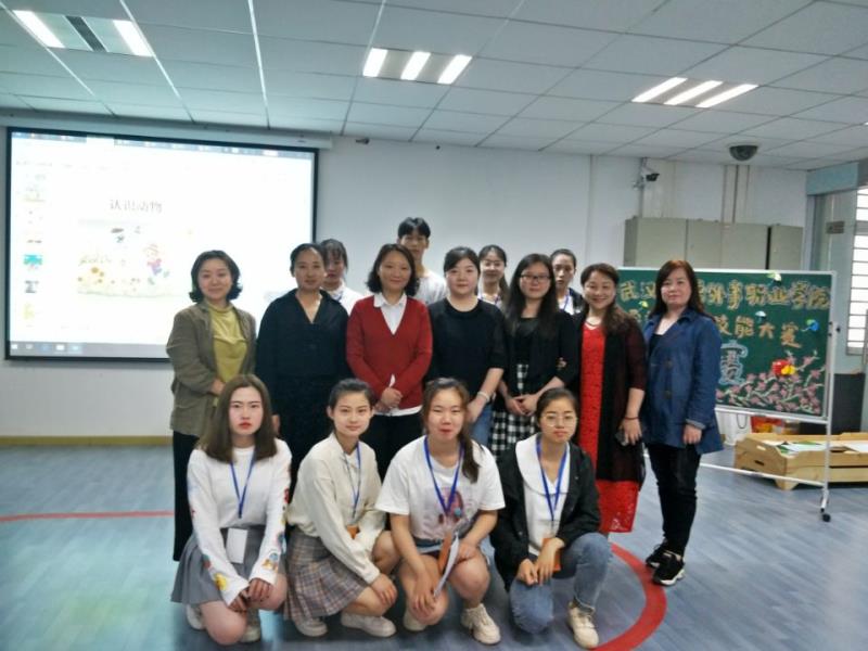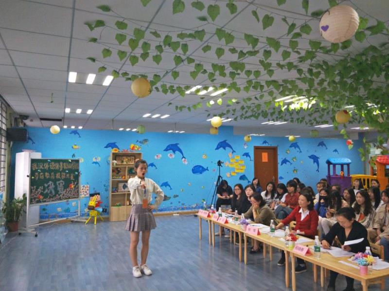 2019年5月15日应用外国语学部应用英语(双语幼师)专业学前教育技能争霸赛决赛在双语幼师实训室举行,W17级该专业的8名进入决赛选手经过6个小时激烈的角逐,李成艳同学获得第一名,郑洁祎同学获得第二名,王誉熹同学获得第三名。此次大赛由熊莺、祝晓春、杨远、熊雯静(鲁倩)四位老师担任评委,连园园老师负责赛事协调,W18级应用英语(双语幼师)专业的20名学生也参加了观摩学习。