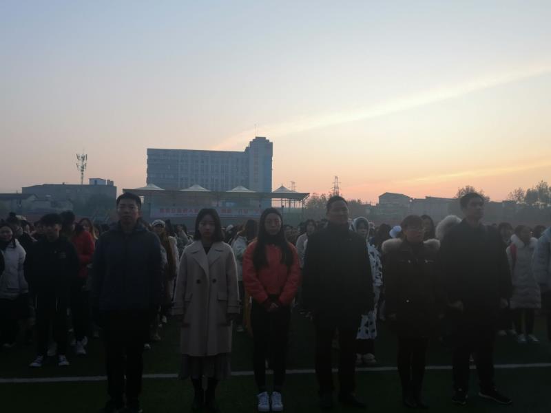寒风凛冽,晨曦微露,早晨6点50分,同学们已早早的到达原定位置,并自发有序地站好队列,等待升旗。