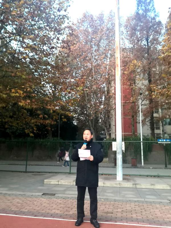 7点整,在全体师生的注视下,国旗护卫队队员们迈着铿锵的步伐,护送鲜艳的五星红旗进场。伴随着庄严的《义勇军进行曲》,五星红旗冉冉升起,全体师生唱国歌,行注目礼,全场弥漫着一种肃穆的气氛。升旗完毕后,2018级商务英语专业胡珊同学发表了以“纪念一二九运动,抗日救国,缅怀先烈”为主题的生动演讲,呼吁同学们勿忘国难,为中华之崛起而读书。随后,学部副主任朱良刚老师发表讲话,朱主任对全体学生提出了三点要求:第一、希望全体同学做到端正学习态度;第二、确认学习目标;第三、树立学业道德,培养良好学习习惯,并告诫大家牢记爱国主义内蕴精神,做一个对祖国有贡献的人,最后对全体师生送出了自己最真诚的祝愿。伴随着掌声,升旗仪式接近尾声,主持人宣布升旗仪式正式结束。