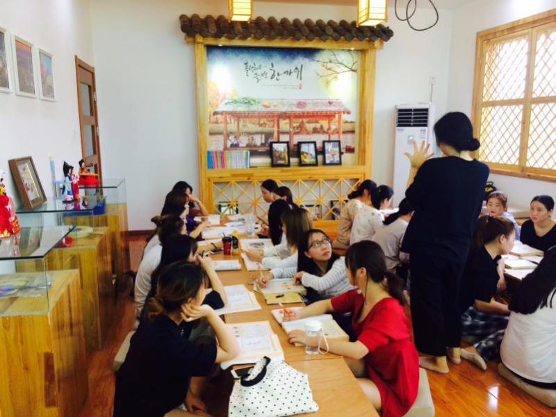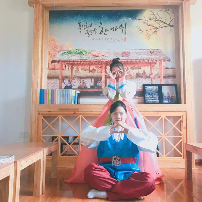 韩语专业学生试穿韩服