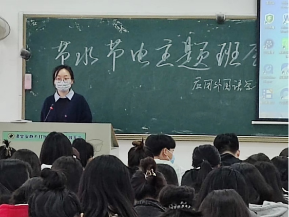 (新宣部 讯)2022年5月15日星期日,应用外国语学部20级商务英语、应用英语、小语种等所有班级在南5401、南5402教室开展了大学生“节水节电”主题班会活动。