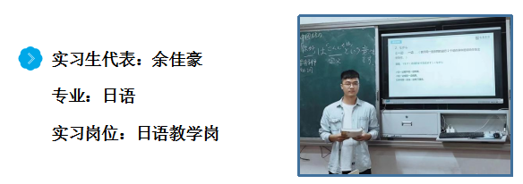 在刚开始的实习期间,我走进日语老师们的课堂,每天坐在班级里的最后一个位置听老师们讲课,其实这种听课和我以往的听课是不一样的,这种听课并不是为了学习老师所讲的知识,而是学习老师怎么样的讲课,如何传授知识,如何驾驭课堂等等。在后来的两个星期中,老师们开始给我安排学生上一些晚自习,给学生进行一对一的一对多的小班补课辅导。