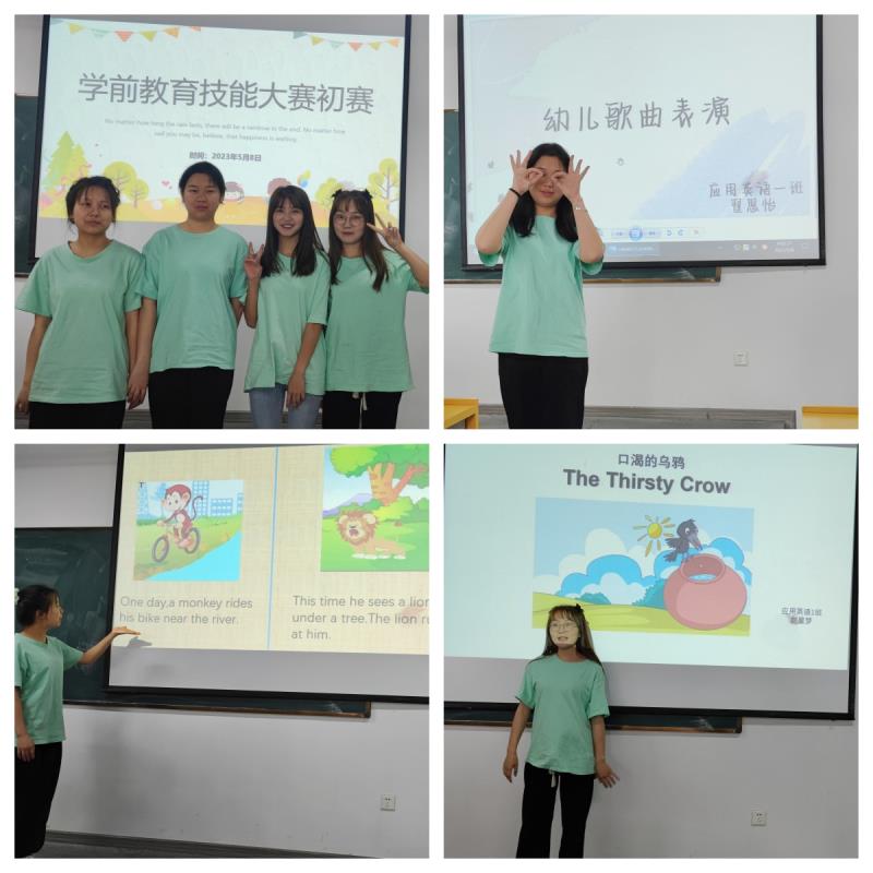 为贯彻落实我院2023年职业教育活动周的工作要求,提升学生综合实践的能力,激发学生学习专业技能的热情,强化专业实操技能的培养,应用外国语学部积极将专业技能竞赛融入日常教学工作中,坚持“以赛促教、以赛促学,以赛促训”。2023年5月8日,学部成功举办了学前教育技能大赛初赛。