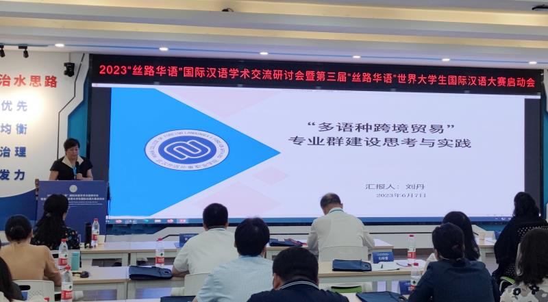 在基地院校“中文+职业技能”项目建设经验分享环节,刘丹展示了我院专业群国际交流合作的阶段性成果,并作了题为《“多语种跨境贸易”专业群建设思考与实践》的主旨报告。她深入分析和展示了专业群的建设基础,优势特色,标志性成果,人才培养模式创新,产教融合基地建设,国际交流与合作成果;从师资教学能力提升、学生参与竞赛活动、积极参加社会培训、课程(教材)建设等方面,展望和规划了2023年“中文+职业技能”的工作重点和建设新思路。